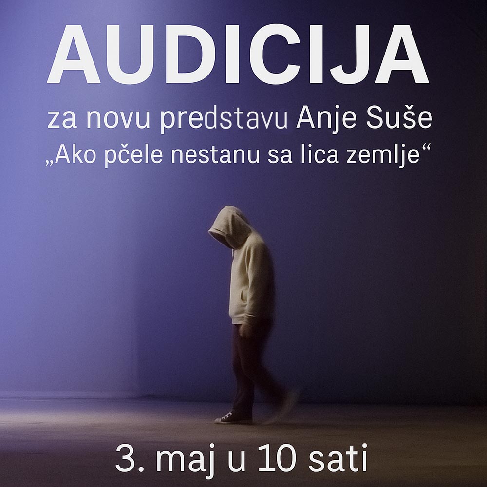 Malo pozorište „Duško Radović“ organizuje audiciju za novu pozorišnu predstavu „Ako pčele nestanu sa lica zemlje“, po motivima romana „Omladina bez Boga“ Edena fon Horvata, po dramatizaciji Tijane Grumić u režiji Anje Suše.
