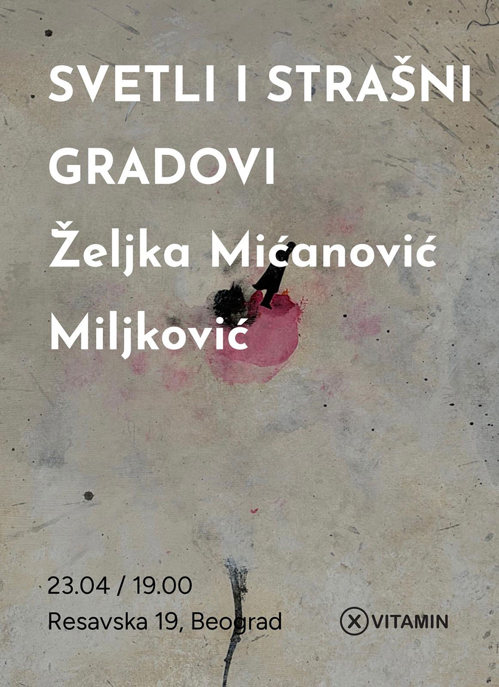 Izložba „Svetli i strašni gradovi“ traje do 9. maja 2026. godine u X Vitamin galeriji (Resavska 19, Beograd).