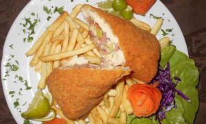Recept šefa kuhinje beogradskog restorana “Konoba kod Goce i Renata” Sastojci: jaja i prezle za paniranje 180g belog mesa 50g pršute 100g...